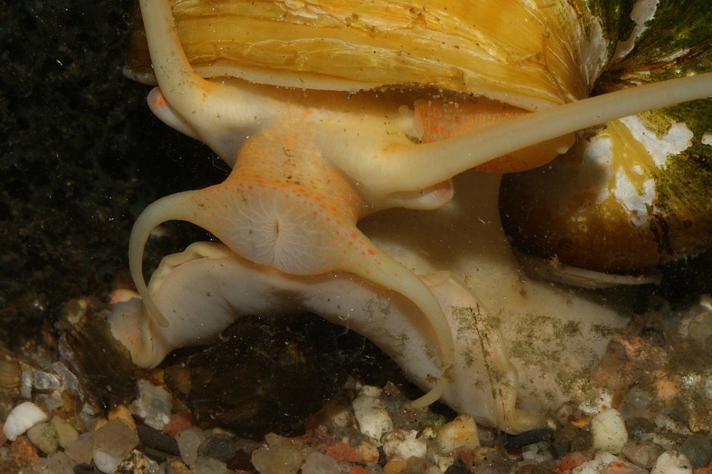 ich schließ mich Ingrid an und denke auch am ehesten an eine Apfelschnecken mit nicht ganz intaktem Gehäuse.