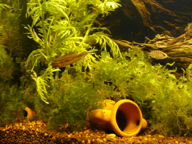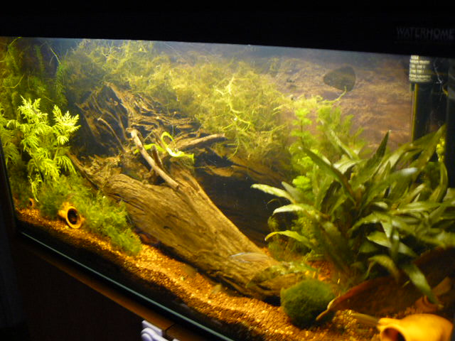 Bei diesem Becken hätt ich vielleicht auch noch filigranere Arten in den Vordergrund pflanzen können, aber weil die Wurzel über 50% der Bodenfläche einnimmt wäre dann kein Platz mehr für die vielen Höhlen.