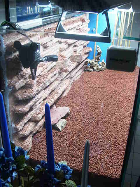 Als zweiter Punkt denke ich, daß Du in der Farbwahl zu dunkel geworden bist. Hellere Farben sind besser, da die Rückwand mit der Zeit sowieso veralgt. Besonders stark an den Stellen die in einer Strömung stehen!