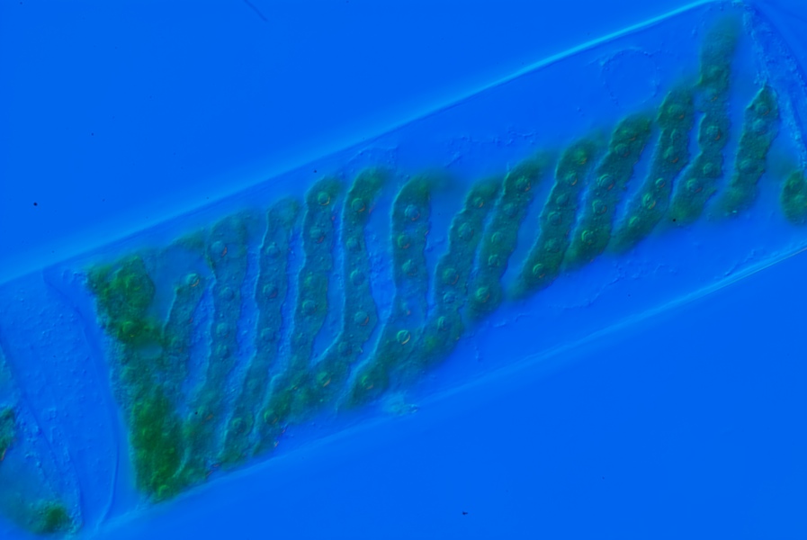 Manfred, Zieralgen habe ich in einer Aquarienprobe noch nicht gesehen - ich habe auch noch nicht so viele Proben aus Aquarien gesehen. In moorigen Gewässern sind sie allgegenwärtig. Sie lieben ein saures, sauberes Milieu.