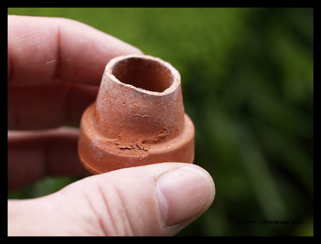 Der gebrannte Ton ist bei diesen Töpfchen aber nicht besonders hart und kann auch mit einer Säge abgesägt werden.