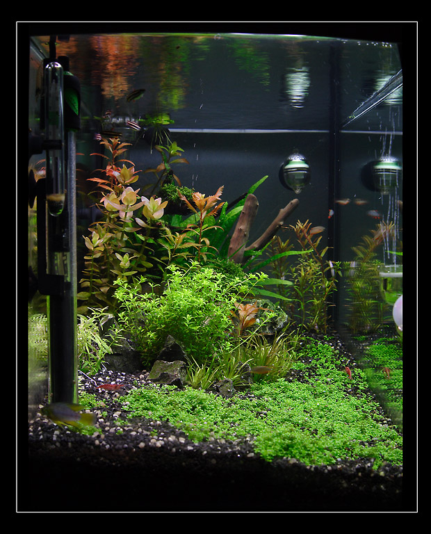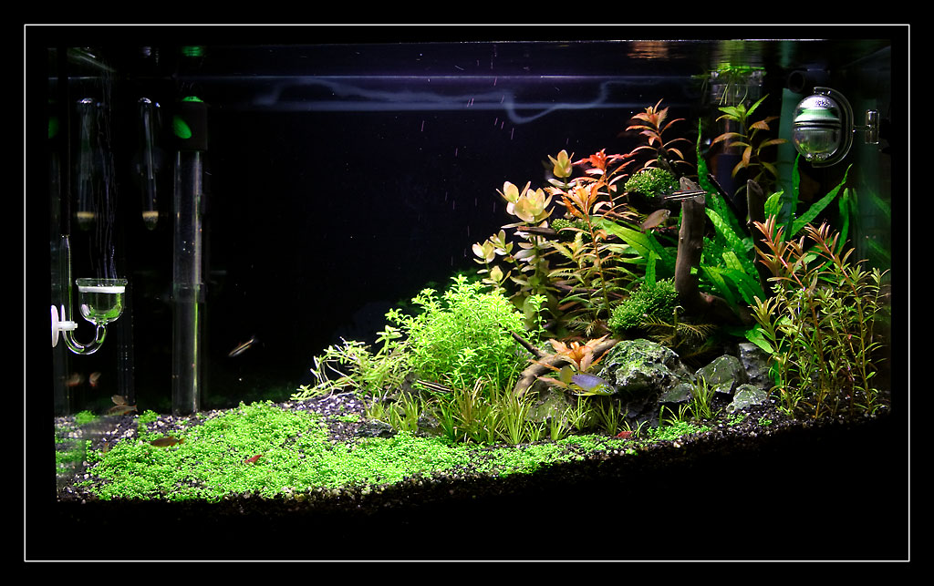 mal wieder ne Gesamtansicht nach dem wöchentlichen Gärtnern. Läuft sehr gut, das HC mehrt sich und die Blyxa wird auch wieder schöner. Das Hemianthus könnt ich jeden zweiten Tag stutzen, nur die Rotala sp. "green" hinten links nervt noch ein wenig mit ihrem zum Boden wachsen.