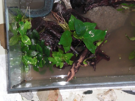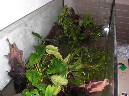 Der mommentane Besatz sind 14 Keilfleckbärblinge, 1M/3W Pastellgrundeln, 11Dornaugen und wahrscheinlich kommen noch ein paar Garnelen dazu.