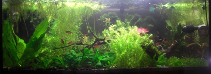 Auf dem Bild hat die Hintergrundbepflanzung nur nen großzügigen Schnitt hinter sich- deshalb etwas spärlich, aber das Problem mit den Algen besteht schon weitaus länger... Pflanzen wachsen alle prächtig, da hätte ich nix zu meckern.