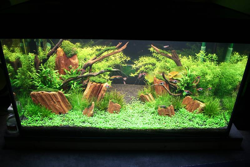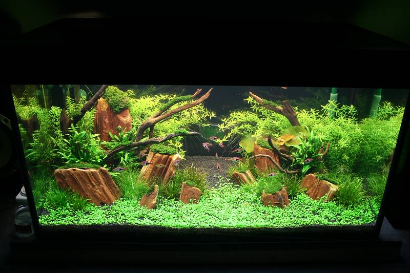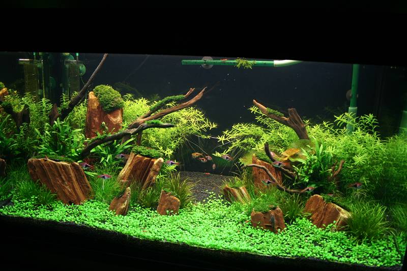 Beleuchtet wird mit 4x30 Watt t8 2xSecial Plant,2xAmazon day Dennerle (never change a winning Team ;) )+ Reflektoren!