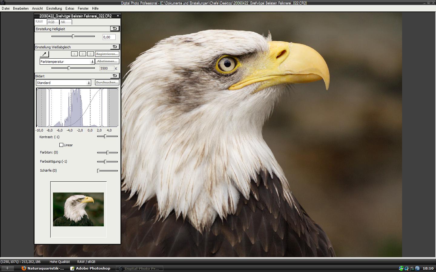 Im Photoshop nur noch etwas Tonwertkorrektur und dann schärfen mit unscharf maskieren. Werte: Stärke 200%, Radius 1,6 und Schwellenwert 6. Bei Radius und Schwellenwert einfach etwas probieren, Die Särke würde ich immer auf 200% lassen.