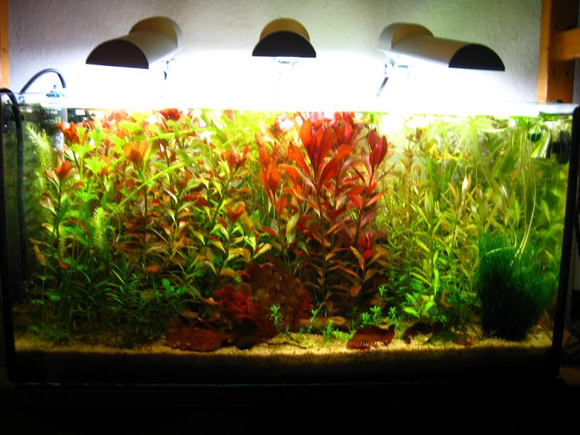 Die Mayaca auf dem ersten Bild legte ganz gut los, ist dann blass geworden und veralgt. Der Wasserfreund will nicht so wirklich wachsen aber die Perlhuhnbärblinge lieben den Ludwigien-Dschungel :)