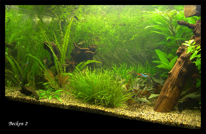 dieses Becken hat von Anfang an die wenigsten Problem in puncto Pinselalgen gemacht. Allerdings ist das Wasser in diesem Becken aus mir unerklärlichen Gründen nie richtig klar. Es ist immer eine Art milchiger Schimmer zu sehen. Die Fische scheinen sich nicht dran zu stören.