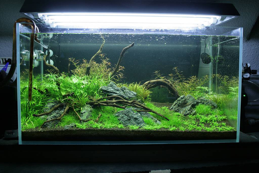 Ich finde vor allem diesen Wurzelbogen auf der rechten Seite nicht schön. Da müsste meiner Meinung nach noch einges zuwachsen. Oder noch etwas mehr an Wurzel hin und die dann mit Moos zuwachsen lassen. Oder ne Anubias drauf.