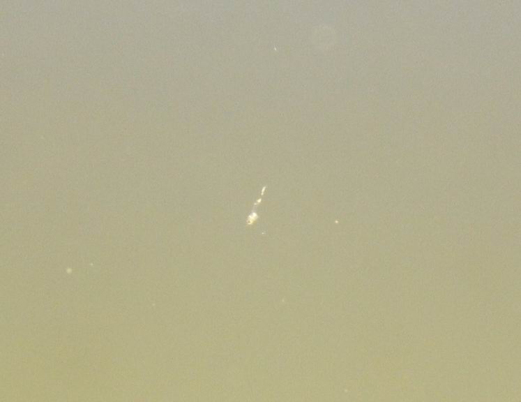Fotos sind schlecht zu machen, das Wasser ist trübe, die Scheiben veralgt und die Larven winzig.