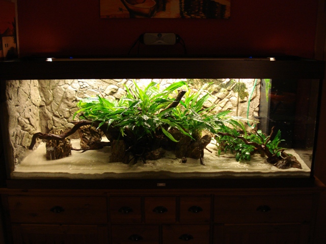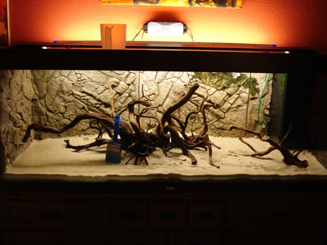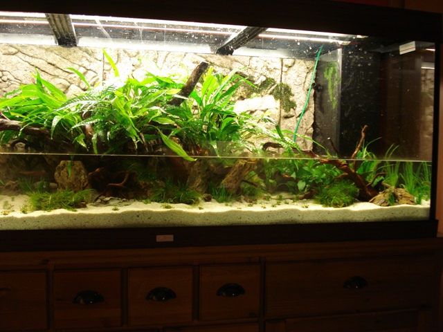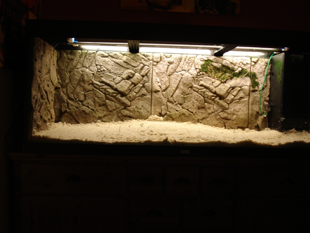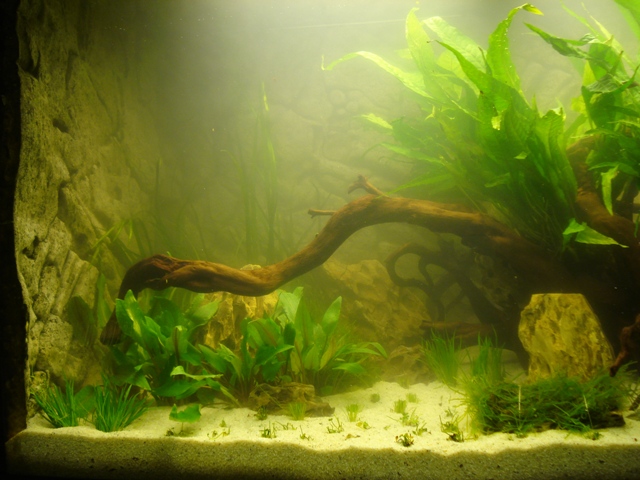 Und hier die letzten, sowie die derzeitige Behausung meiner Fische. Leider war ich so dämlich und habe die Bakterienkulturen ins Wasser getan, bevor es komplett gefüllt war :grmpf: Deshalb wirkt es leider ziemlich trübe... Aber bessere Bilder gibts bestimmt bald :wink2: