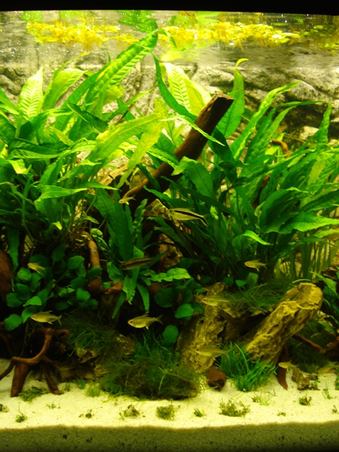 Bezüglich der Schwimmpflanzen bin ich eigentlich recht optimistisch, denn die vermehren sich ja nicht nur schnell und ziehen ordentlich üerflüssige Nährstoffe, sondern beschatten sie das Becken ja auch leicht. Ich hoffe einfach das es wie sonst auch wieder klappt, denn Schwimmpflanzen sind doch leichter zu händeln, als immer wieder schnell wachsende Pflanzen ins fertige Layout zu stecken und diese dann wieder zu entfernen :wink2: