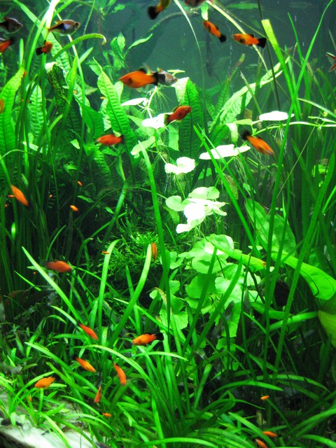 Pflanzen: da das Becken über relativ wenig Licht verfügt und ich im Moment keine weiteren Leuchtbalken installieren möchte habe ich mich auf Pflanzen beschränkt die mit der Beleuchtung zufrieden sind.