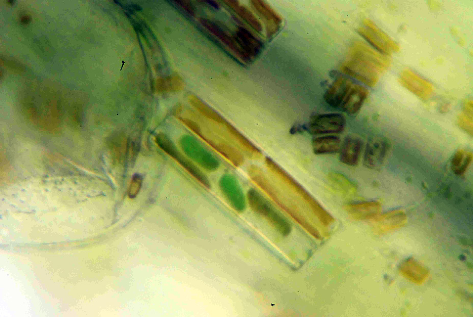 Die braunen Lichtsäume zeigen die Miniwurzel. Und die ist ja rund. Man sieht wie die Kieselalgen den Platz nutzen und hintereinander und übereinander gewachsen sind. Dazwischen liegen runde Bakterien. Auch grün ist vertreten :lol2: