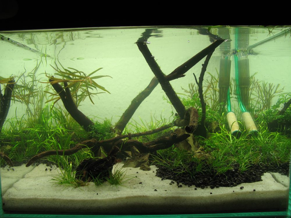 die pflanzen wachsen momentan recht zufriedenstellend und algen sind auch keine vorhanden. nur muss ich sagen, dass es mir momentan eher nicht sonderlich gefällt... irgendwie ist es langweilig :(