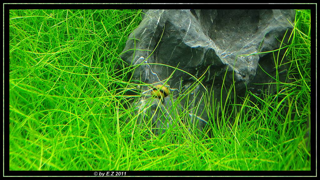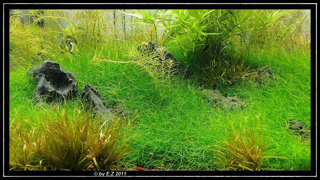 Von den Steinen ist schon wieder nicht viel zu sehen, da die Eleocharis parvulla wieder unbedingt geschnitten werden müsste.