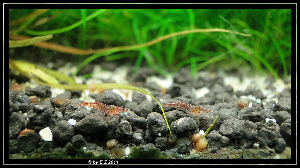 Und natürlich vom Nachwuchs der Red Fire und meiner neuen Algen-Polizei (Geweihschnecken) die schon einiges geleistet haben. 3 von 9 Steinen haben sie innerhalb einer Woche blank geputzt.