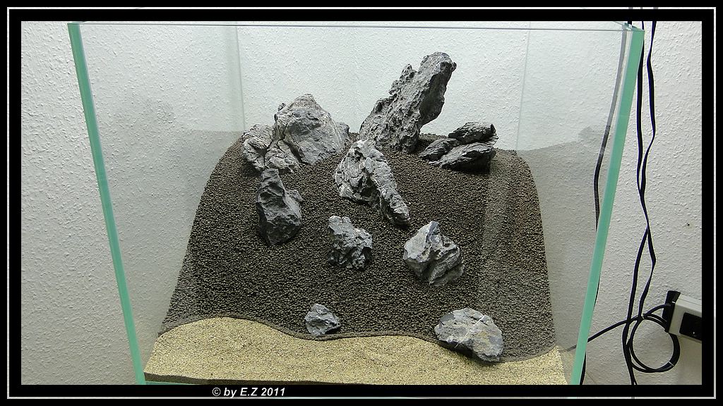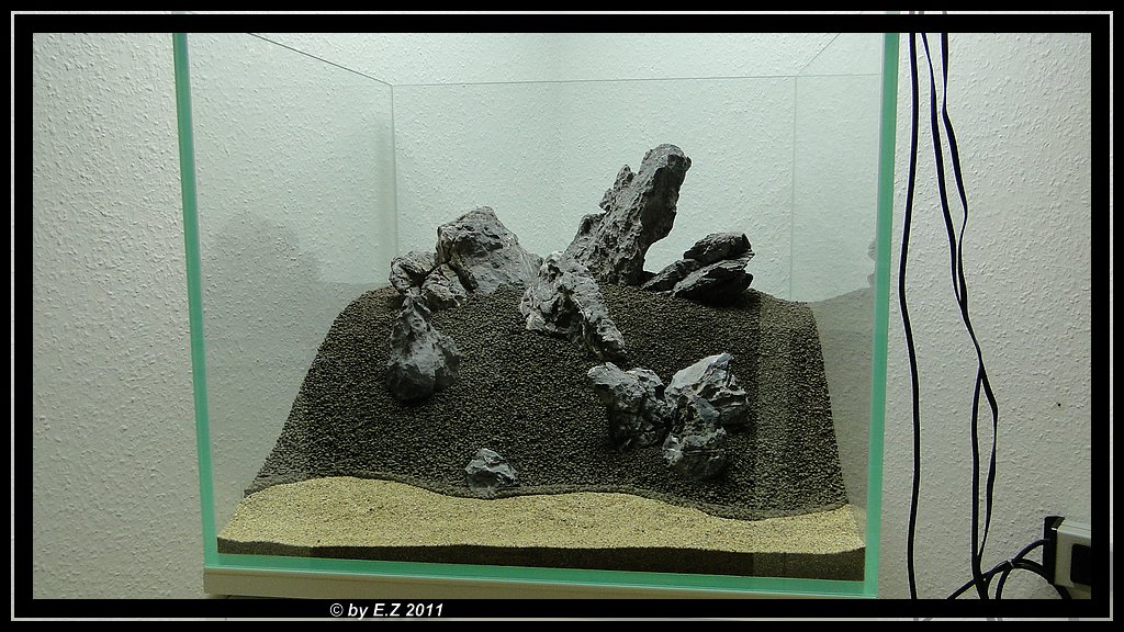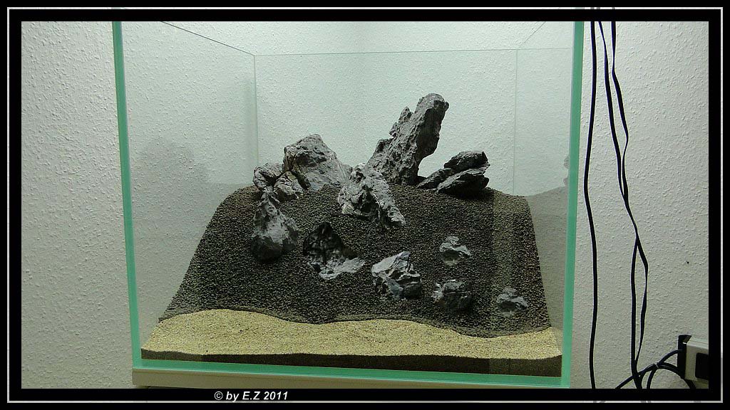 Aber ich denke, das das grundlegende Problem einfach die Größe der Steine und das, meiner Meinung nach, viel zu extrem ansteigende Soil sind. Ich finde das die Steine von der Größe extrem verloren ausschauen. Und ich muss sagen, das wenn ich schon so viel Zeit und Geld in das ganze Aquarium gesteckt habe, das ich dann jetzt nicht mehr an den Steinen sparen würde und mich schnellst möglich auf die Suche nach größeren Steinen machen würde. Denn bei deiner geplanten Bepflanzung sehe ich momentan ehrlich gesagt, ein wenig schwarz :shock2: Ich denke, das du von den Steinen dann kaum noch was sehen wirst, was wirklich schade wäre. Momentan wirkt es auf mich, als hättest du versucht, durch diesen extremen Anstieg mit dem Soil, die Steine nur möglichst weit Richtung Wasseroberfläche zu bekommen, damit sie größer wirken... Aber ich finde, das dadurch genau das Gegenteil eingetreten ist. Sie wirken irgendwie noch verlorener...