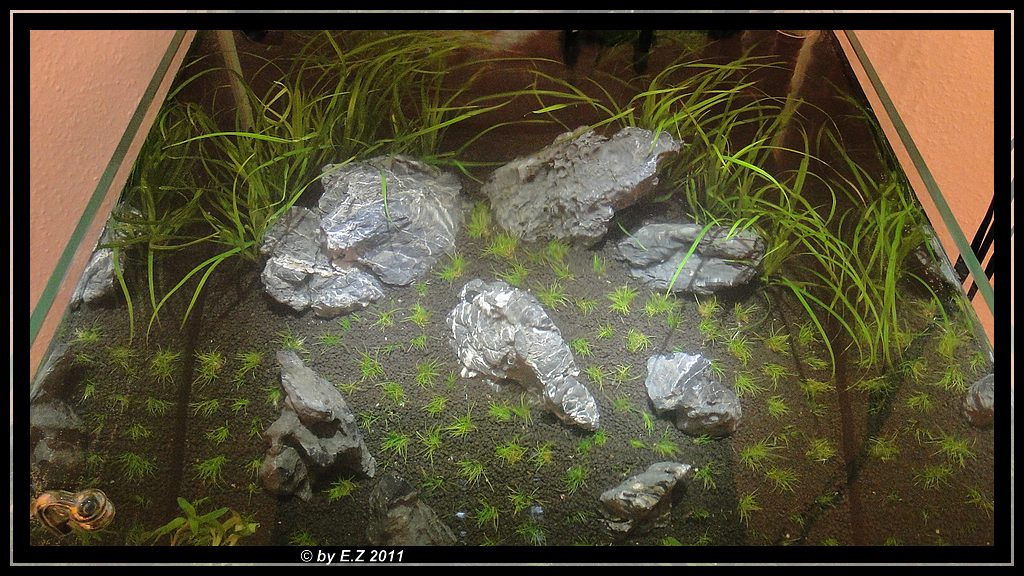Ich würde hinten Eleocharis acicularis setzen und gut.