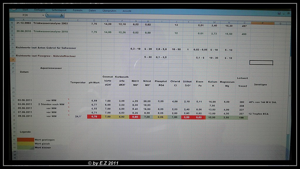 werde heute Nachmittag wieder das Wasser wechseln. Vorab habe ich eben schon mal wieder die Werte ermittelt.