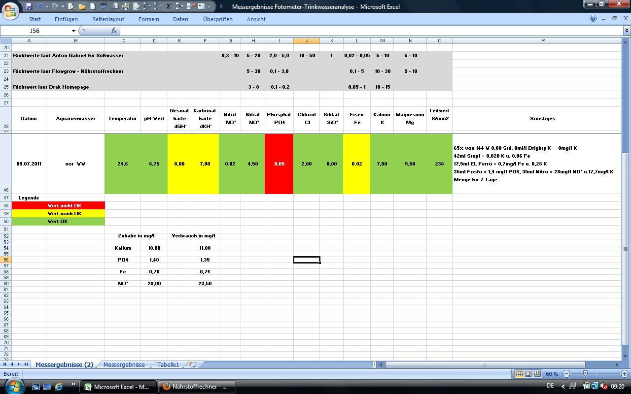 Habe mal die Mengen angegeben die ich in den letzten 7 Tagen zugeführt habe aufgeführt und die ermittelten Mengen auch.