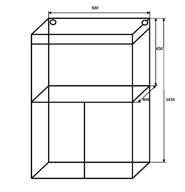 900 x 400 x 650 = 234 Liter