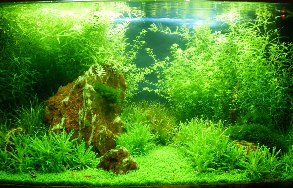 anbei hab ich für euch ein paar Bilder, wie sich das ganze bis jetzt entwickelt hat, nach meinem Eindruck, kann ich mehr als zufrieden sein, ich habe zwar ein paar Algen an der Frontscheibe ganz weit unten im Sandbereich, aber das macht mir absolut nichts aus, solange sie im Bodengrund bleiben und nicht meinen Rasen damit überziehen.