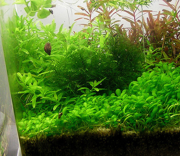 Habe sie nun in ein 1L Nano getan wo paar Blasenschnecken drin sind.
