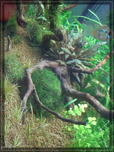 Der Besatz ist ein Schwarm knurrende Zwergguramis, ein Schwarm Sichelfleck- Panzerwelse sowie ein paar braune Otocinclus und Amano Garnelen.