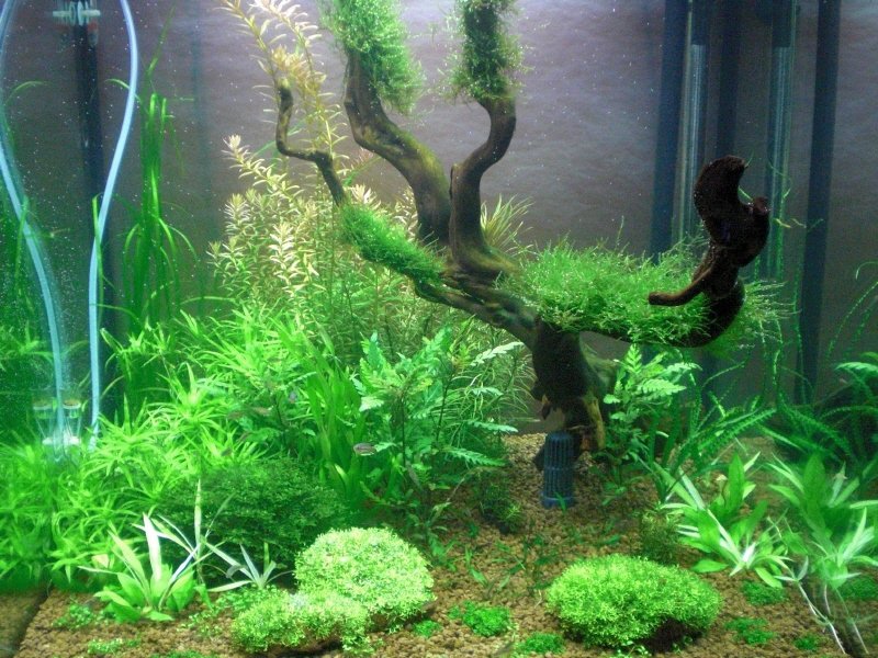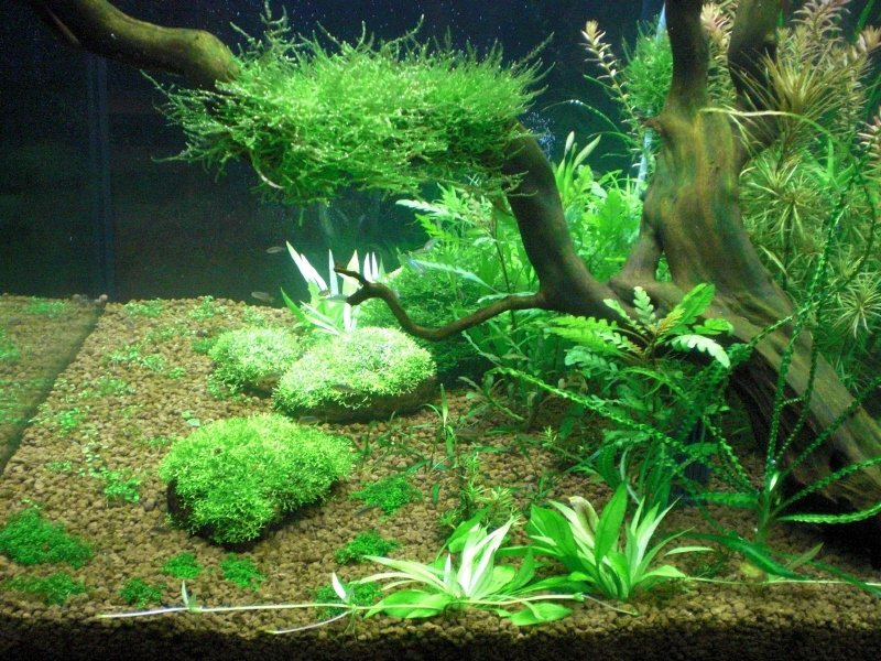 ich hätte noch ein paar mit Riccia bepflanzte Lavasteine um den Ansaugkorb zu verstecken, jedoch glaube ich, daß unter der Wurzel zu wenig Licht dafür ist.