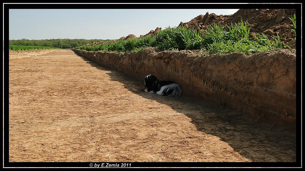 Wie ich schon hier geschrieben habe, siedelt sich bei uns ein ganzer Ort neu an, der wegen der Braunkohle umgesiedelt wird. Seit einiger Zeit haben die Baggerarbeiten schon begonnen und bevor es richtig losgeht, sind zuerst die Archäologen dran. Unser Havaneser Eddie hat sich dabei auch schon mal auf Spurensuche begeben.