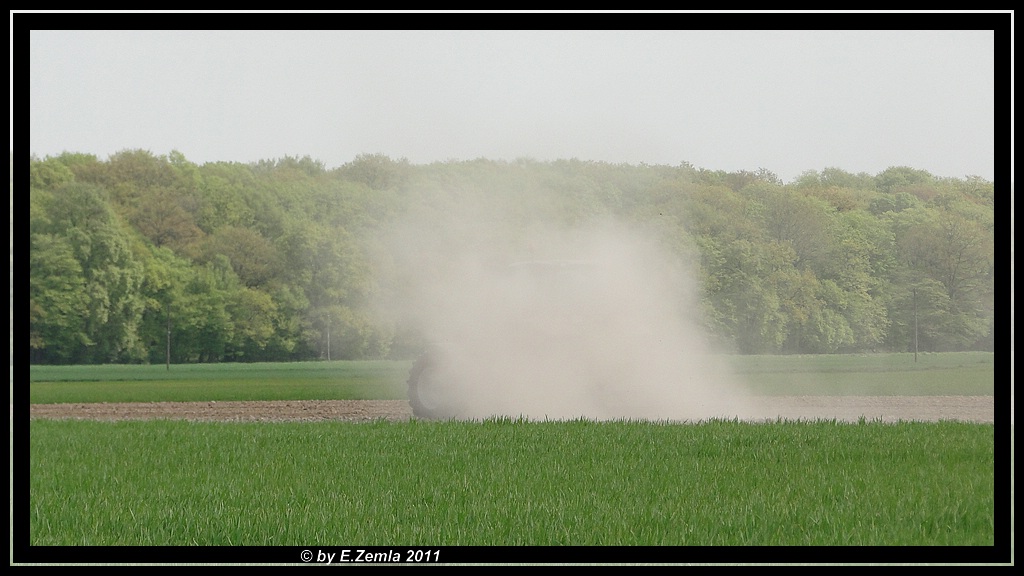 Und wie man sieht ist es bei uns unheimlich trocken. Ich konnt den Bauern mit seinem Traktor nur noch erahnen.