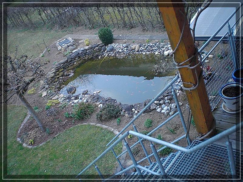 das ist ein schöner Teich, den du da hast :thumb: Ich warte auch darauf, das es endlich wieder warm wird, denn auch bei mir schaut es momentan recht trostlos aus :( Und ich möchte, das es wieder so aussieht, wie in meinem Vorstellungsthread: