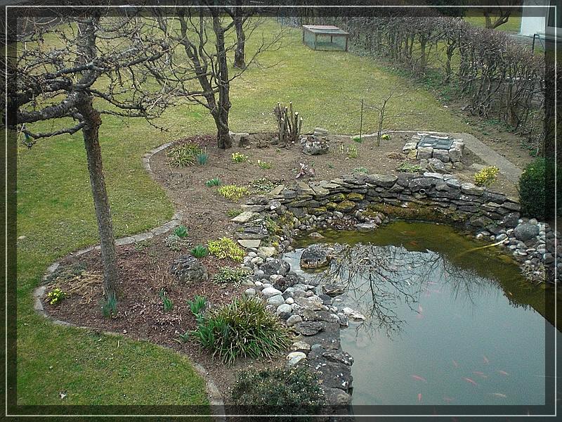 das ist ein schöner Teich, den du da hast :thumb: Ich warte auch darauf, das es endlich wieder warm wird, denn auch bei mir schaut es momentan recht trostlos aus :( Und ich möchte, das es wieder so aussieht, wie in meinem Vorstellungsthread: