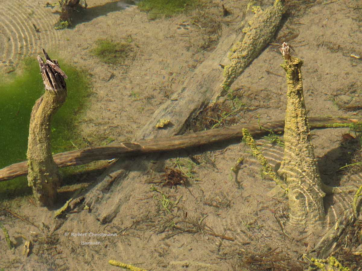Es gibt auch Stellen die eher meinem Becken entsprechen, weil solche Hochwasseropfer dort auf Kiesboden stehen, aber das ist dann meist in der Strömung der Isar und meist sehr schlecht zu fotografieren.