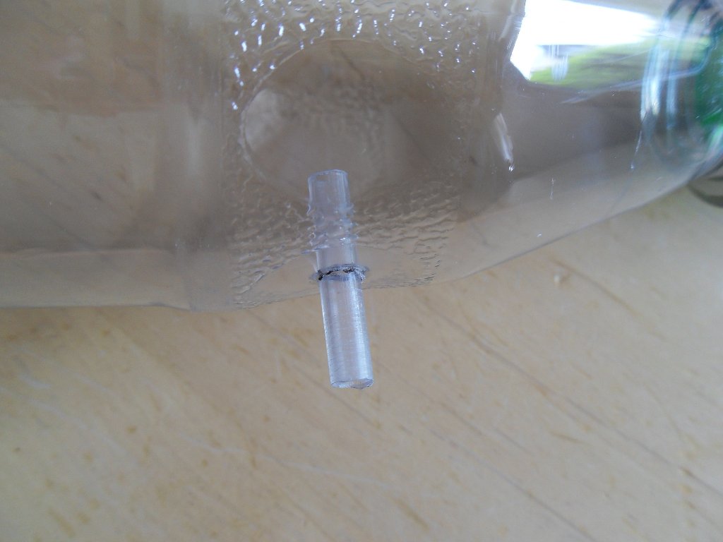 Auch habe ich diesmal die Schraubkappe abgelassen, da ein 22" Schlauch genau in den Flaschenhals passt !