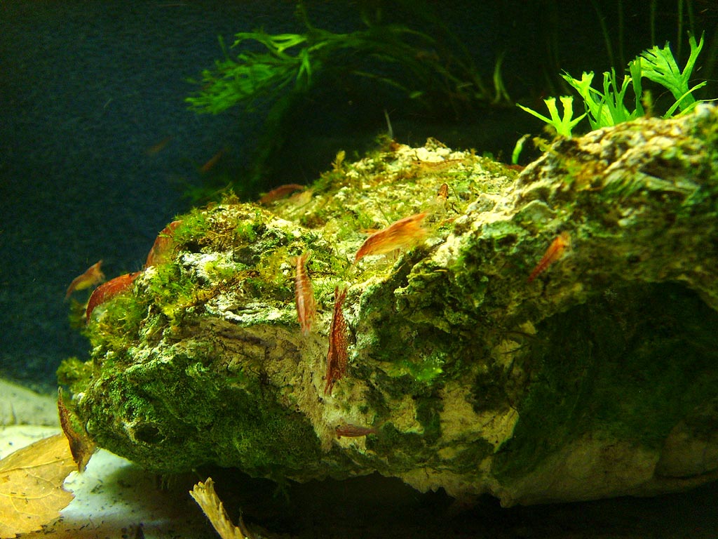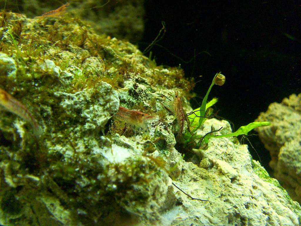 Nachdem allem Anscheion nach eine eingeschleppte Krebspest meine geliebten Cherax destructor dahingerafft hat :mad2: habe ich das Becken komplett umgestaltet. Den noch darin lebenden Red Fire-Garnelen war das egal, die waren eher begeistert (sind ja sehr neugierige Tiere).