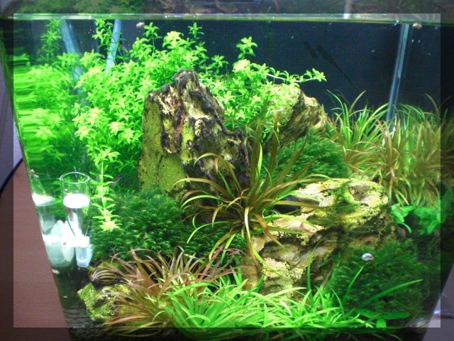 Ich würde aber die grünen (wie Blyxa?) gegen kleiner Bodendecker tauschen...