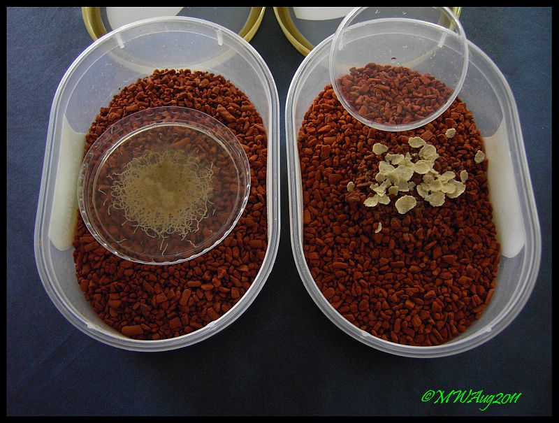 Erst nachfüttern, wenn keine Haferflocken und Überreste davon mehr sichtbar sind...Hab mal gelesen, das Milben auftreten könnten. Die kann man angeblich mit ein paar Kellerasseln bekämpfen...