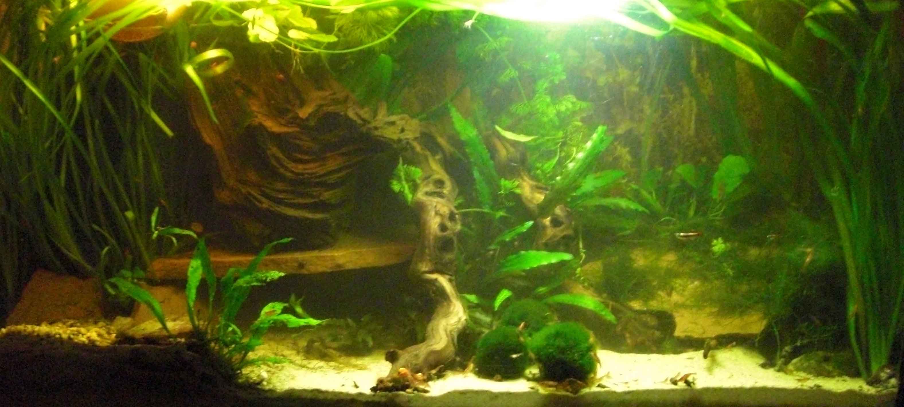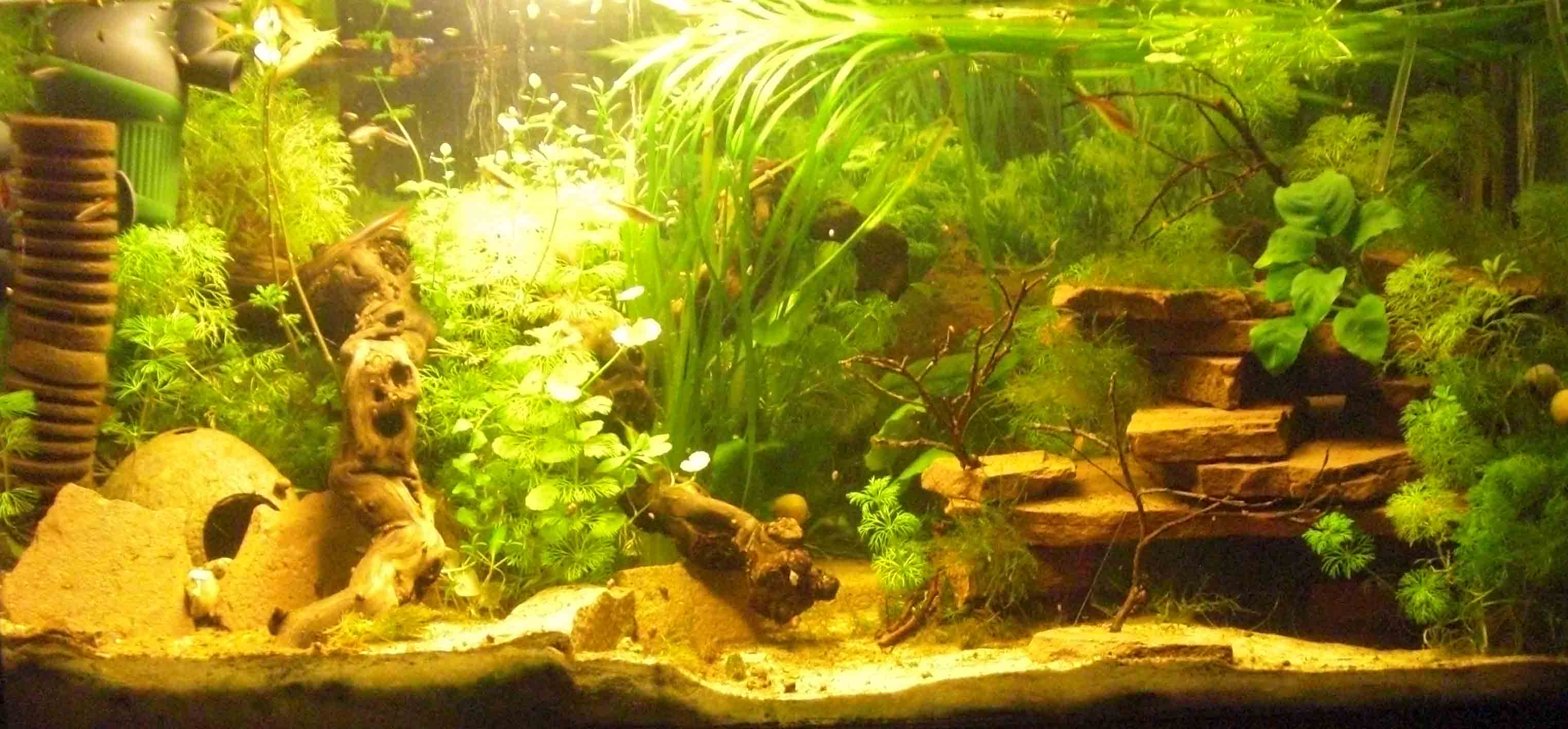 - Besatz: 8 Panzerwelse (leider nur noch 2 Pandas, 2 trilieneatus, 3 swatzii und ein melanistus, sie sehen sich aber zum Glück als Gruppe und schwimmen im Schwarm),