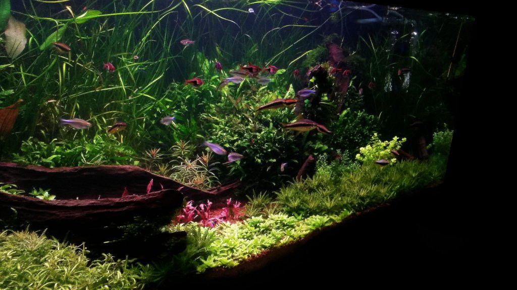 An den Farnen habe ich mich satt gesehen. Klar, man hat natürlich nur einen minimalen Arbeitsaufwand, um so ein Becken am laufen zu halten. Eigentlich ist es bis auf die ww und 1x wöchentlich die Vallisneria einfangen überhaupt keine Arbeit.