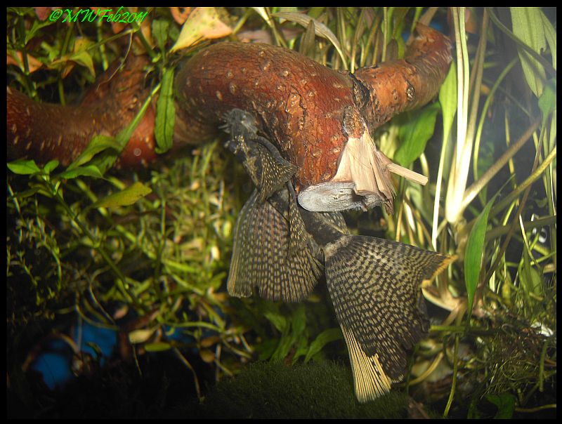 Ein Pärchen Schleierancistrus mit ihrem Nachwuchs...