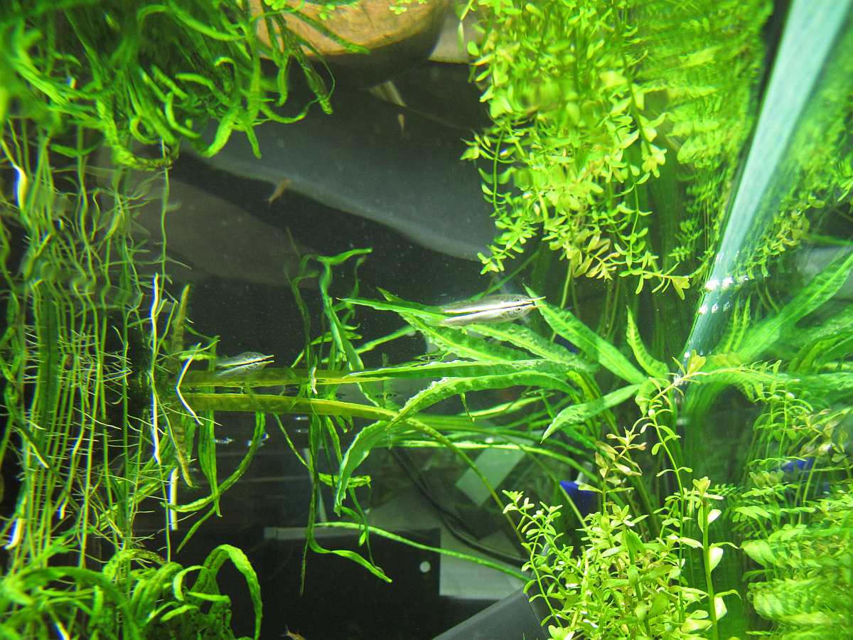 Blyxa japonika um den ""Isar-Stamm"", aber nicht um den ganzen Boden zuzupflastern sondern um an schönen Plätzen Grasbüschel (auch Ansammlungen) zu erhalten.