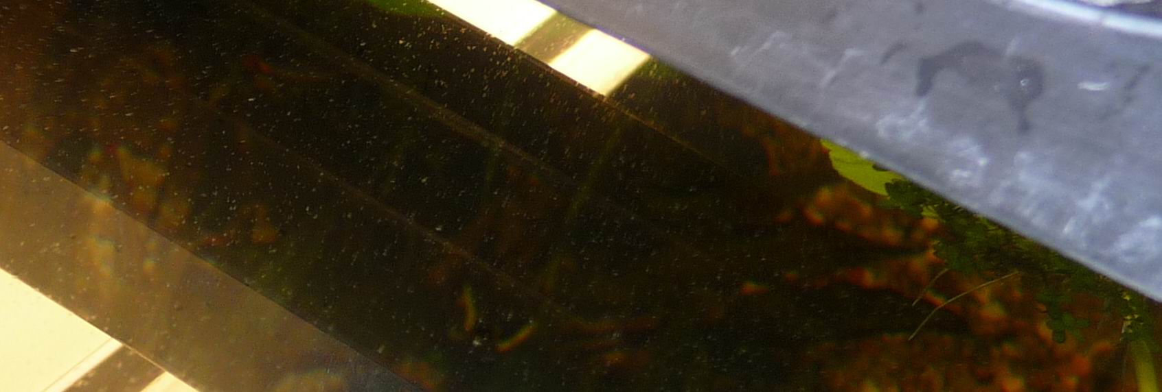 - Vor 14 Tagen habe ich die Kahmhaut nahezu vollständig abgeschöft (siehe Themenstartbeitrag), 80% Wasser gewechselt und den Filter ausgedrückt.