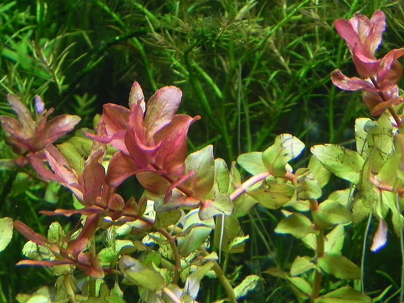 aber besonderst eine wunderschöne pflanze bekomme ich nicht bestimmt. zuerst dachte ich es ist eine ludwiga, aber meine pflanze hat runde blätter in der submersen form, bei der ludwige laufen sie spitz zu. die blattadern sind leicht mamoriert.