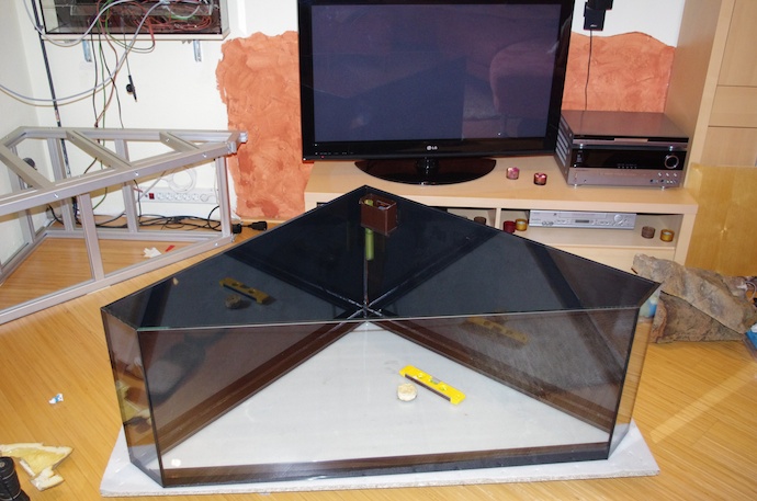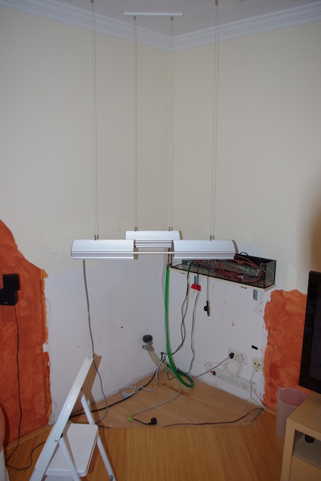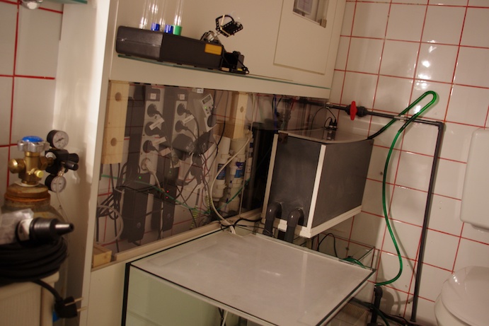 Auf den Bildern sieht man jetzt den Technikraum, die neu montierten Lampen und das neu montierte Becken für die Hintergrundbepflanzung. Heute wird das Stahlgestell umgeändert. Weitere Bilder folgen.