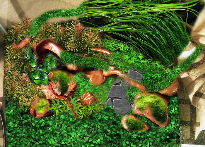 Auf den Wurzeln soll in der Tat nur ein kleines Moos hin, Javamoos ist mir da viel zu groß. Geeignet wären Riccardia, Phönix oder Teichlebermoos. Wobei ich mich dann wohl für Riccardia entscheiden würde.