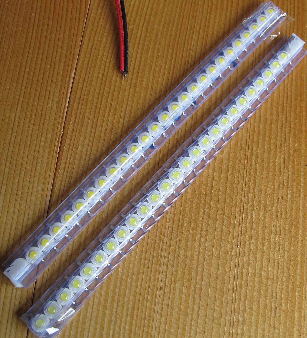 Die 4000k- + 6500k-LEDs ohne Sternplatine sollen dann abwechselnd 1:1 gemischt auf die Aluschienen mittels Wärmeleitkleber und PE-Isolier-Beilagscheibe geklebt werden.