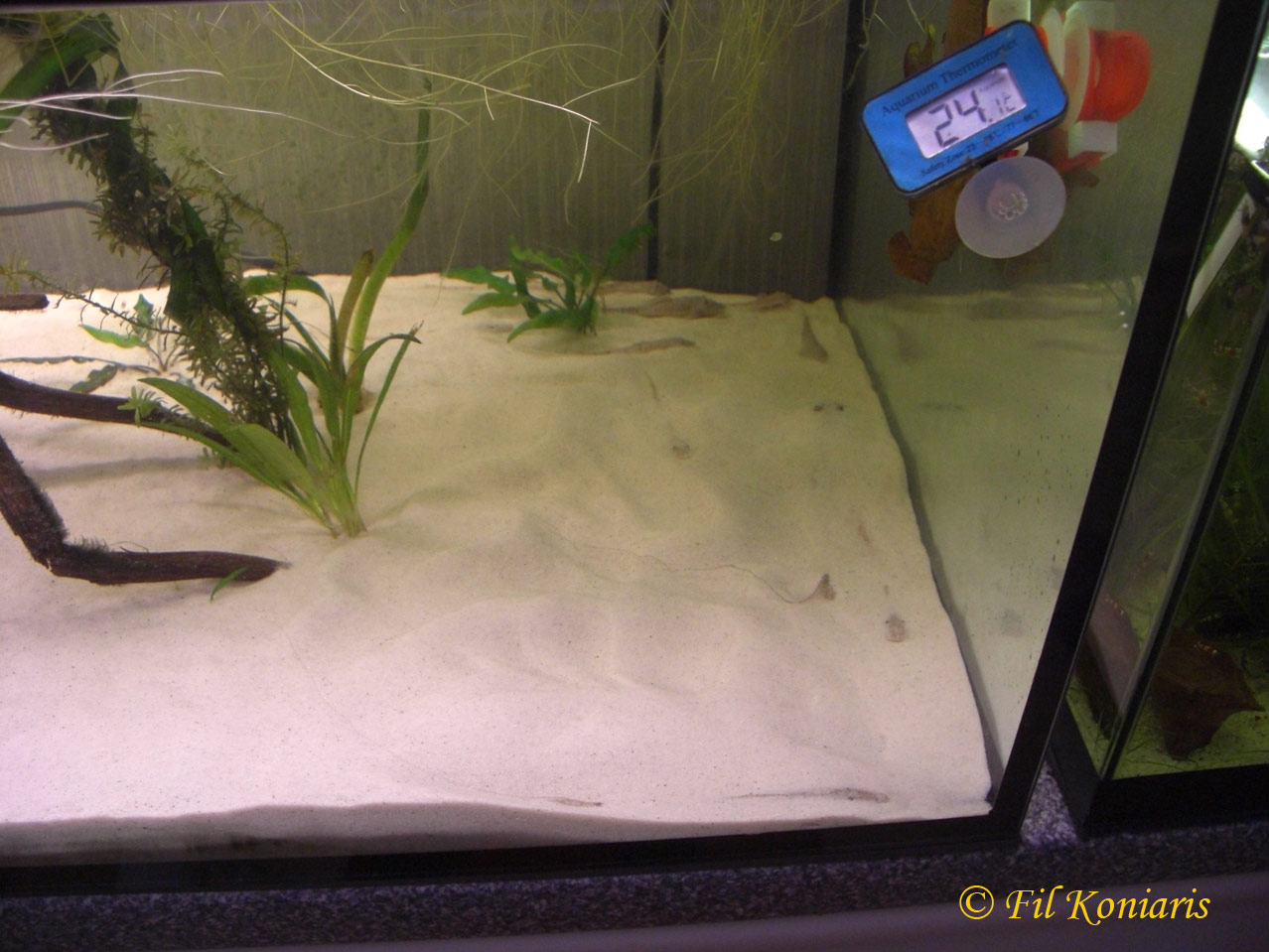 Zuerst hatte ich drei Sandwelse in meinem 860 Liter Tank, friede Freude Eierkuchen bis irgendwann mal ein Sandwels mit einem Total abgeraspeltem Rücken daher kam. Ein Wels hat hier ganze Arbeit geleistet, der arme Kerl ging mir ein die anderen überlebten knapp sie waren auch schon leicht angeknabbert worden. Eigentlich hätte ich es wissen müssen, das man Sandwelse nicht mit L-Welsen zusammen hält. Oke ich habe sie dann in ein anderes Becken gelegt mit Sturinachzuchten und Sterbainachzuchten Nur konnten sich die Tierchen kaum noch drehen. Kurz und gut die zwei sind mir eingegangen weil ich einen neuen Filter installiert hatte ,und ich beim gärtnern im Becken igendwie den Filter berührt und dadurch verstellt habe und kaum Wasser heraus kam.