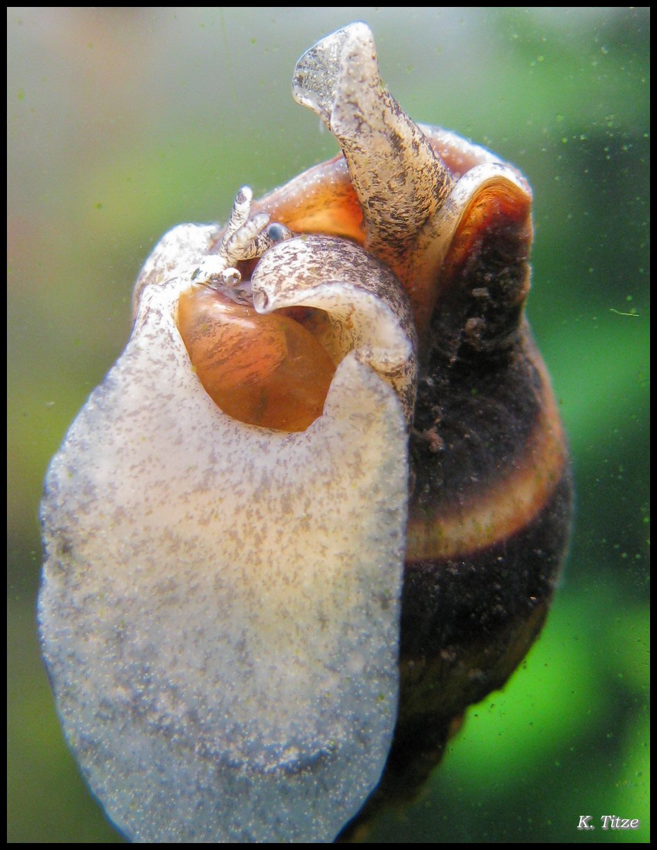 beim Durchschauen meiner Bilder habe ich ein interessantes Bild von meiner Anentome entdeckt, die über eine sehr kleine andere Schnecke kroch. Mit bloßem Auge konnte ich nicht sehen, ob der kleinen Schnecke etwas geschah. Aber das Macro hat es festgehalten....